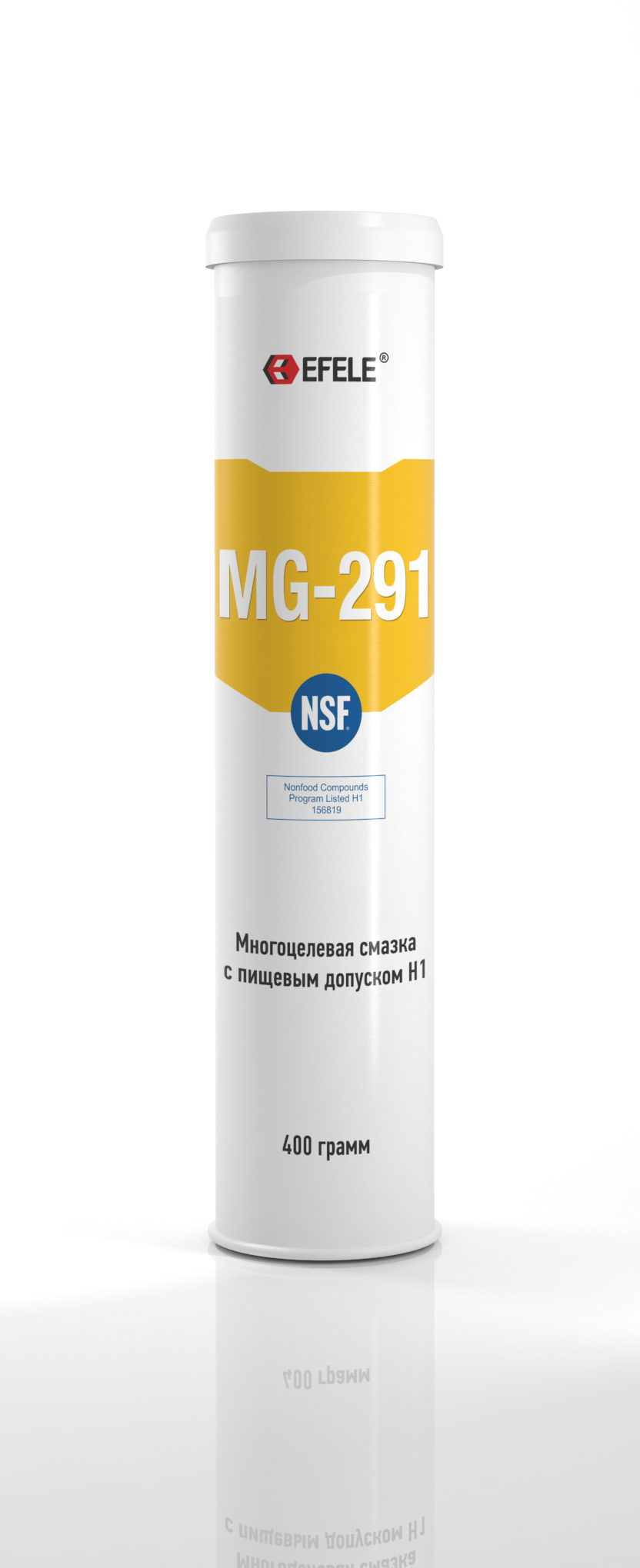 Многоцелевой пластичный смазочный продукт на основе белого медицинского масла минерального происхождения, загущенного алюминиевым комплексным мылом. EFELE MG-291 имеет пищевой допуск H1. Предназначен для обработки узлов трения, скольжения, качения, работающих при температуре -20…+120 °С. Смазка не вымывается водой, стойкая к кислотным, а также щелочным воздействиям. Может применяться для металлических, пластиковых и резиновых деталей.