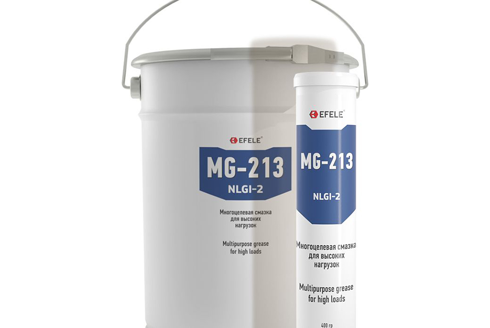 Синяя пластичная смазка российского производства изготовлена на основе минерального масла и литиевого комплекса, содержит противозадирные присадки. Рабочий диапазон температур составляет -30…+160°С. EFELE MG-213 EP 2 стабильна при воздействии влаги, устойчива к смыванию, ее несущая способность составляет 2800 Н. Покрытие гарантирует защиту деревообрабатывающего, полимерного, металлургического оборудования.