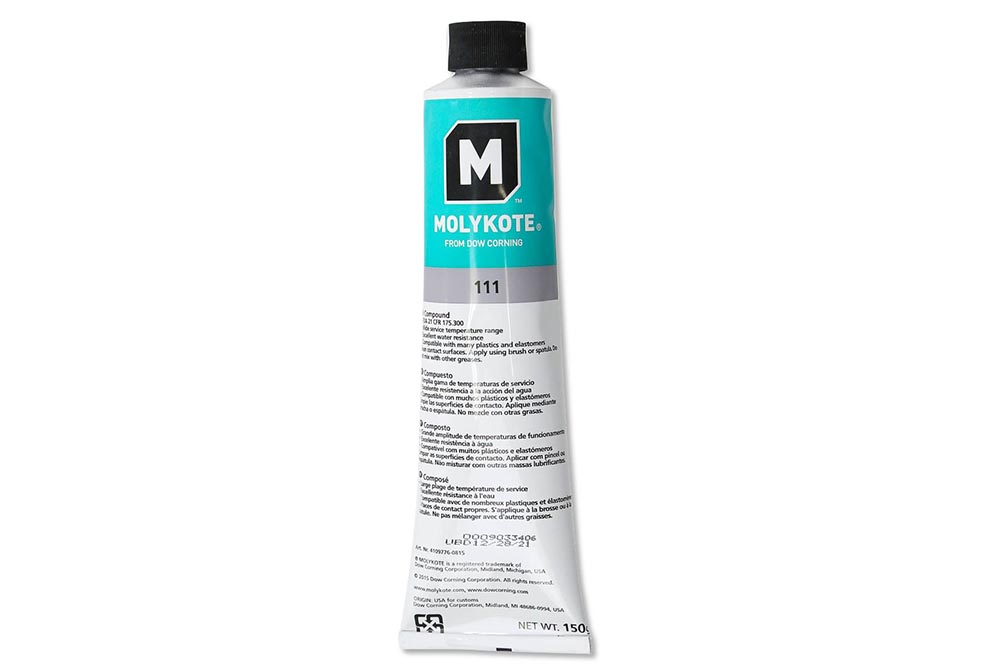 Molykote 111 – силиконовый компаунд, предназначенный для герметизации и электроизоляции. Смесь устойчива к температурным перепадам и большинству химических соединений. Задействуется в уплотнительных конструкциях пневмо- и гидросистем, подшипниковых механизмах, трубопроводной арматуре, высоковольтной технике. Обеспечивает герметизацию и электроизоляцию электрических контактов, выступает разделительным компонентом при производстве полимерной продукции. Также применяется для уплотнения направляющих дисковых тормозных систем. Наличие специальных допусков позволяет применять смесь в системах питьевого и газового снабжения. Материал совместим с большинством пластмасс и устойчив к смыванию.