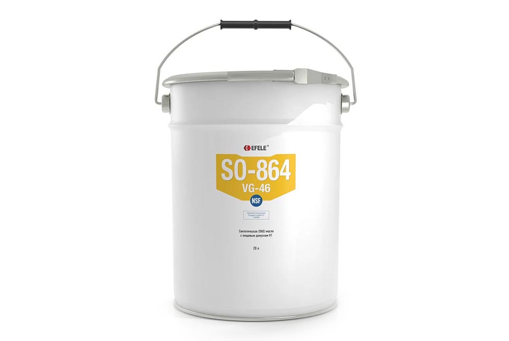 Синтетический смазочный материал на основе полиальфаолефина. Диапазон рабочей температуры составляет -50° +140°С, а кинематическая вязкость – 9,5°С. EFELE SO-864 проявляет высокие антикоррозионные свойства и благодаря наличию допуска NSF H1 подходит для использования в фармацевтической и пищевой промышленности. Применяется для обслуживания лопастных и ротационных винтовых воздушных компрессоров, вакуумных насосов, узлов холодильного оборудования.