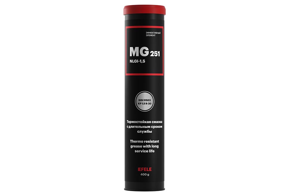 Это смазка на минеральной основе с добавлением полимочевины в качестве загустителя и противозадирных присадок. Диапазон рабочих температур составляет -20° +180° С. Благодаря высоким противозадирным и противоизносным свойствам EFELE MG-251 применяется для смазки узлов, работающих в условиях высокой температуры и повышенной нагрузки. Подходит для оборудования металлургийной, цементной, легкой промышленности, вентиляторов обдува и электромоторов, подшипников печей и конвейерных систем.