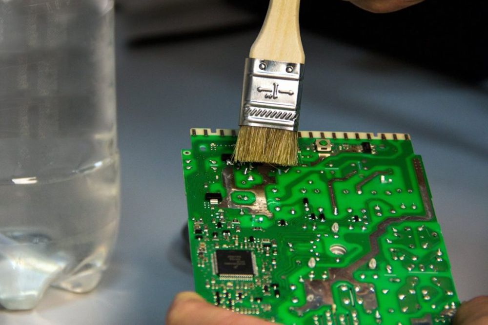 1. Подготовка поверхности. Перед применением вещества необходимо очистить поверхность от грубых загрязнений, таких как пыль, грязь или остатки флюса. Это можно сделать с помощью щетки, салфетки или других средств очистки.
