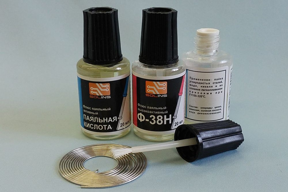 Это самый распространенный флюс, который используется в быту и промышленности для пайки углеродистой стали, меди, никеля и их сплавов. Его получают путем растворения в воде хлористого цинка (ZnCl2). Обычно в продаже поставляется 40% раствор, поэтому при необходимости его можно разбавлять водой.