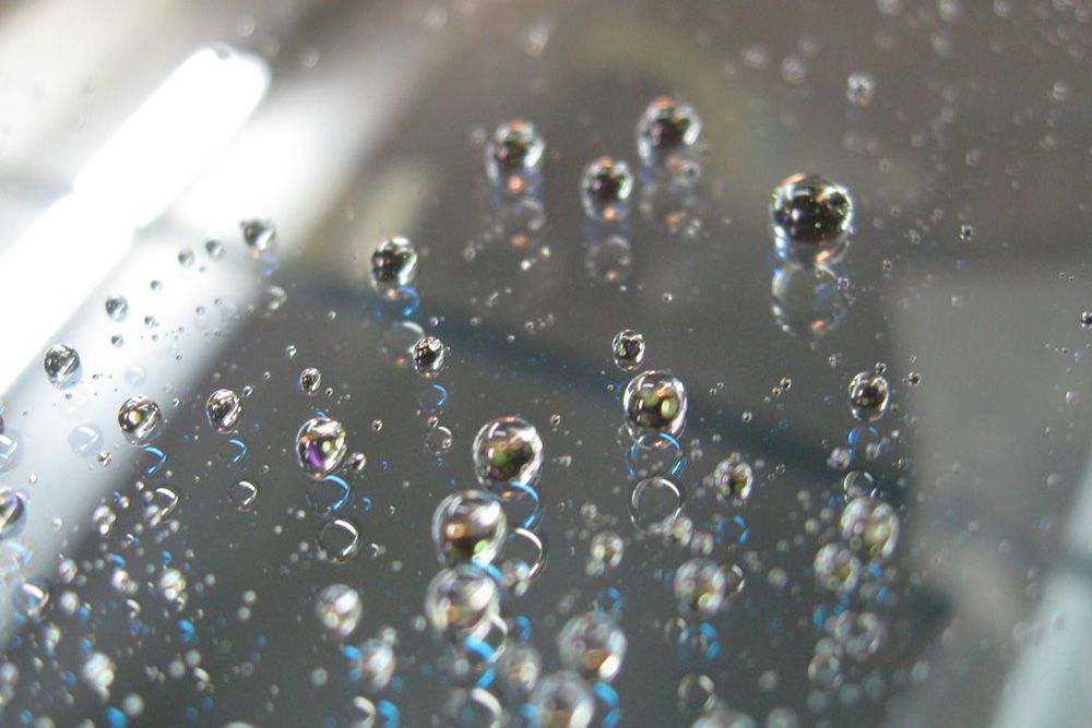 Жидкость равномерно покрывает поверхность, заполняет микронеровности, сглаживает их. После испарения растворителя образуется пленка. Покрытие имеет гладкую поверхность, на которой вода не задерживается, а скатывается в виде мелких шариков или струй под действием потоков воздуха. Это улучшает видимость во время дождя – капли воды не образуют пелену, не создают искажающего барьера между водителем и дорогой.