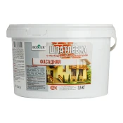 - Фасадная. Бывает базовой и финишной. Базовая применяется для первичного выравнивания наружных поверхностей. Она устойчивая к атмосферным воздействиям и механическим повреждениям. Финишная характеризуется мелкодисперсной фракцией наполнителя. Используется для создания гладкой поверхности перед окрашиванием или нанесением декоративных покрытий.