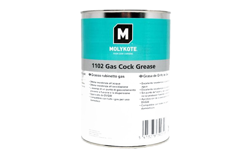 1. Molykote 1102 – термостойкий и водостойкий состав, с высокими адгезивными характеристиками, разрешенный к использованию в газовых сетях. Есть температурные ограничения – при отрицательной температуре смазка не используется.