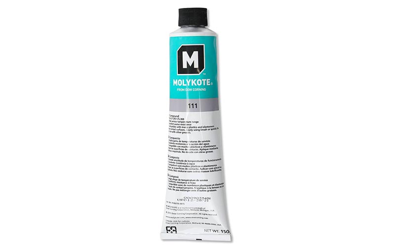 2. Molykote 111 – силиконовый компаунд для герметизации стыков, влагостойкий, не вымывается, обладает низкой летучестью и низким давлением паров, не боится химических веществ. Состав работает в широком диапазоне температур – от-40 до +200 градусов.
