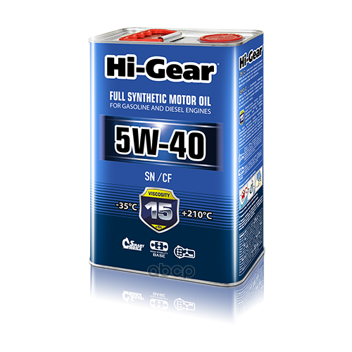 Масло Hi-Gear 5W-40 рекомендуется:Взамен масел 0W-30, 5W-30 и 10W-30 для устранения стука гидрокомпенсаторов и / или снижения угара масла.Взамен масел 10W-40 и 15W-40 для повышения надежности пуска и снижения износа двигателя во время прогрева при низких температурах (до -35 °С).Взамен предписанных масел 0W-30, 5W-30 и 10W-30 при пробеге более 100 тыс. км для уплотнения увеличенных вследствие износа зазоров и повышения давления в системе смазки (за счет большей вязкости масла при 100 °С).масло Hi-Gear 5W-40 совместимо со всеми моторными маслами Hi-Gear и с высококачественными синтетическими и полусинтетическими моторными маслами других торговых марок.предназначено для всех типов бензиновых и дизельных двигателей, в том числе с турбонаддувом и каталитическим нейтрализатором.состоит из пакета присадок Infineum и синтетической базовой композиции, включающей сложные эфиры (эстеры) и продукты HC-синтеза (гидрокрекинга).совместимо: со всеми моторными маслами Hi-Gear и с высококачественными синтетическими и полусинтетическими моторными маслами других торговых марокспецификации И соответствия:API SN/CF, ACEA A3/B4, MB 229.5, VW 502 00/505 00, RN 0710, BMW LL-01, PORSCHE A40