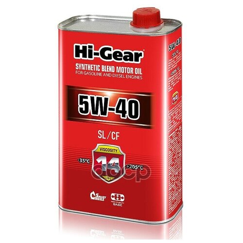 Предназначено для всех типов бензиновых и дизельных двигателей, в том числе с турбонаддувом и каталитическим нейтрализатором.состоит из пакета присадок Infineum и полусинтетической базовой композиции, включающей продукты HC-синтеза (гидрокрекинга) и высококачественные минеральные базовые масла.спецификации И соответствия:API SL/CF; ACEA A3/B4 MB 229; VW 501 01/505 00Советы специалистовмасло Hi-Gear 5W-40 рекомендуется:Взамен масел 5W-30 и 10W-30 для устранения стука гидрокомпенсаторов и / или снижения угара масла.Взамен масел 10W-40 и 15W-40 для повышения надежности пуска и снижения износа двигателя во время прогрева при низких температурах (до -35 °С).Взамен предписанных масел 5W-30 и 10W-30 при пробеге более 100 тыс. км для уплотнения увеличенных вследствие износа зазоров и повышения давления в системе смазки (за счет большей вязкости масла при 100 °С).масло Hi-Gear 5W-40 совместимо со всеми моторными маслами Hi-Gear и с высококачественными синтетическими и полусинтетическими мот