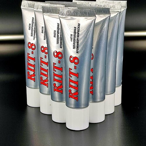 КПТ-8 (Кремнийоргани́ческая Па́ста Теплопрово́дная)Высоковязкая теплостойкая белая масса, полученная путем загущения полидиметилсилоксановой жидкости порошком оксида цинка.Паста КПТ-8 химически инертна, взрывобезопасна, не горюча, не оказывает раздражающего и общетоксического действия на организм.применение:Обеспечивает эффективный тепловой контакт между двумя соприкасающимися или сближенными поверхностями в аппаратуре и оборудовании различного назначения, бытовой технике, значительно уменьшает контактное тепловое сопротивление и рекомендуется для применения в интервале рабочих температур от -60 до +180ºС.физико-химические свойства:Плотность, г/см3: 2,6 - 3,0Удельное объемное электрическое сопротивление, Ом×м, не менее: 1012Электрическая прочность пасты при толщине слоя 1 мм и частоте 50 Гц, МВ/м: 2Диэлектрическая проницаемость при частоте 50 Гц, не более: 6,0Диэлектрическая проницаемость при частоте 1 МГц, не более: 4,0Теплопроводность при 20ºС, Вт/(м×К): не менее 0,7Теплопроводность при -50ºС, Вт/(м×К): не менее 1,0Теплопроводность при 100ºС, Вт/(м×К): не менее 0,65Корродирующее воздействие: отсутствие зелени на медной пластине в течение 24 ч