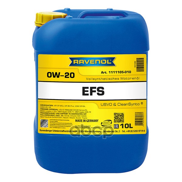Ravenol Моторное Масло Ravenol Efs Ecofullsynth Sae 0W-20 (10Л) New