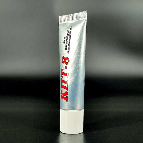 КПТ-8 (Кремнийоргани́ческая Па́ста Теплопрово́дная)Высоковязкая теплостойкая белая масса, полученная путем загущения полидиметилсилоксановой жидкости порошком оксида цинка.Паста КПТ-8 химически инертна, взрывобезопасна, не горюча, не оказывает раздражающего и общетоксического действия на организм.применение:Обеспечивает эффективный тепловой контакт между двумя соприкасающимися или сближенными поверхностями в аппаратуре и оборудовании различного назначения, бытовой технике, значительно уменьшает контактное тепловое сопротивление и рекомендуется для применения в интервале рабочих температур от -60 до +180ºС.физико-химические свойства:Плотность, г/см3: 2,6 - 3,0Удельное объемное электрическое сопротивление, Ом×м, не менее: 1012Электрическая прочность пасты при толщине слоя 1 мм и частоте 50 Гц, МВ/м: 2Диэлектрическая проницаемость при частоте 50 Гц, не более: 6,0Диэлектрическая проницаемость при частоте 1 МГц, не более: 4,0Теплопроводность при 20ºС, Вт/(м×К): не менее 0,7Теплопроводность при -50ºС, Вт/(м×К): не менее 1,0Теплопроводность при 100ºС, Вт/(м×К): не менее 0,65Корродирующее воздействие: отсутствие зелени на медной пластине в течение 24 ч