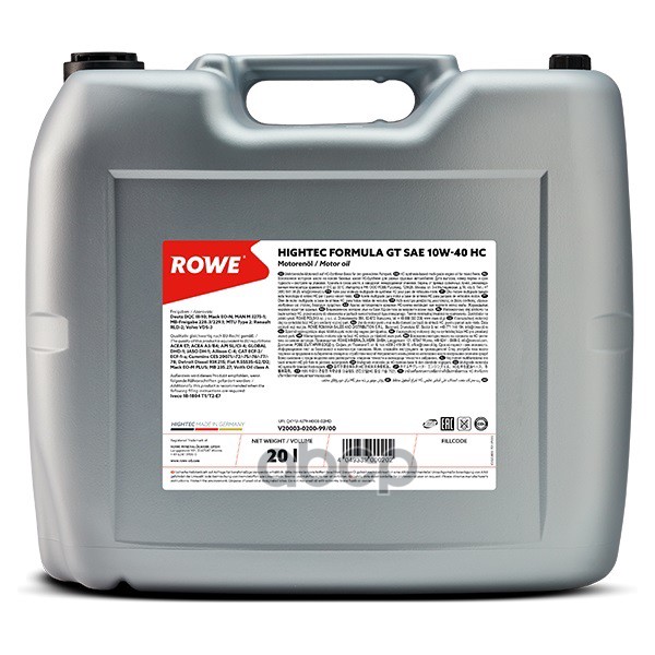 Синтетическое моторное масло ROWE 10W-40 HighTec Formula GT предназначено для использования в современных бензиновых и дизельных двигателях легковых автомобилей и лёгких грузовиков. Оно обеспечивает надёжную защиту от износа, коррозии и образования отложений, а также способствует экономии топлива.