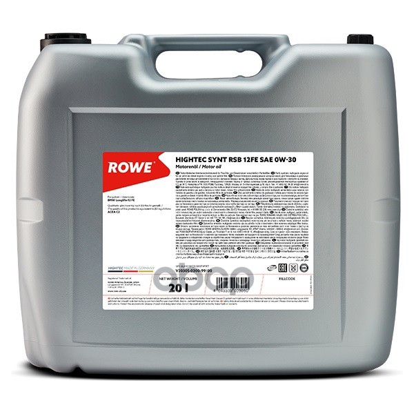 Моторное масло ROWE полусинтетическое 0w30 Hightec Synt Rsb 12fe 20л