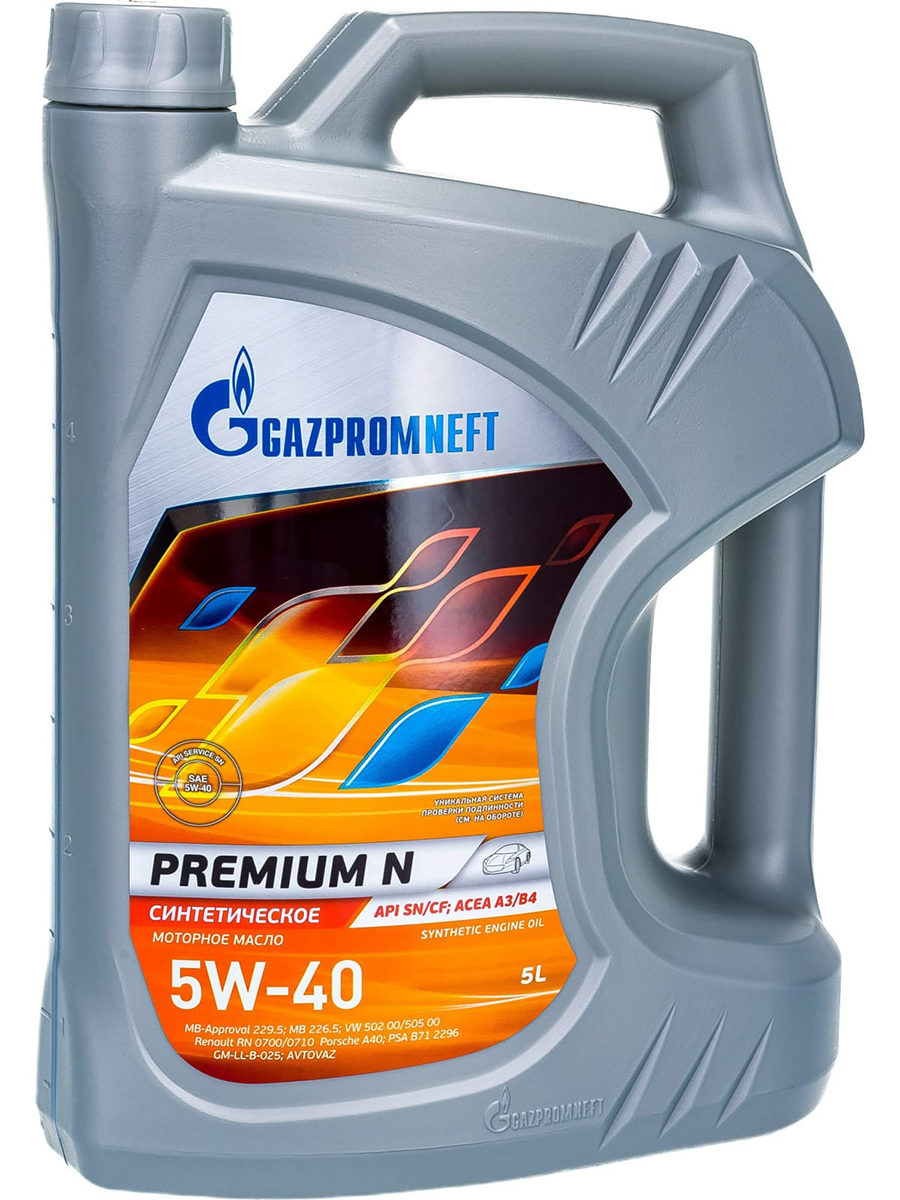 Синтетическое моторное масло GAZPROMNEFT Premium N SN/CF A3/B4 5W-40 предназначено для современных бензиновых и дизельных двигателей легковых автомобилей, микроавтобусов и лёгких грузовиков.