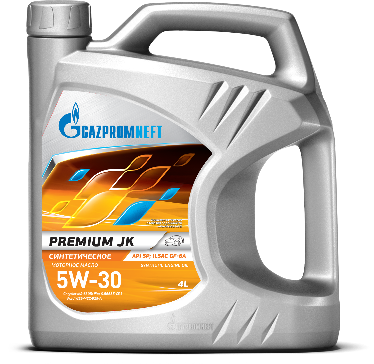 Gazpromneft Premium JK 5W-30 - полностью синтетическое энергосберегающее моторное масло, предназначенное для максимальной защиты высокофорсированных бензиновых двигателей современных японских, корейских и американских автомобилей, работающих в различных условиях эксплуатации. СПЕЦИФИКАЦИИ: API SN, API SP, CHRYSLER MS-6395, FIAT 9.55535-CR1, FORD WSS-M2C-929-A, ILSAC GF-5, ILSAC GF-6A.