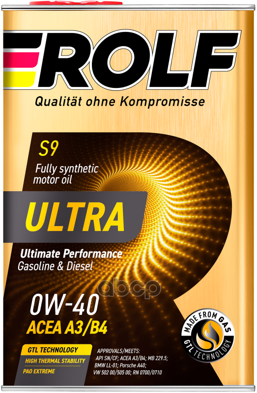 ROLF Масло Моторное Rolf 0W40 (4Л) Ultra S9 (Acea A3/B4)