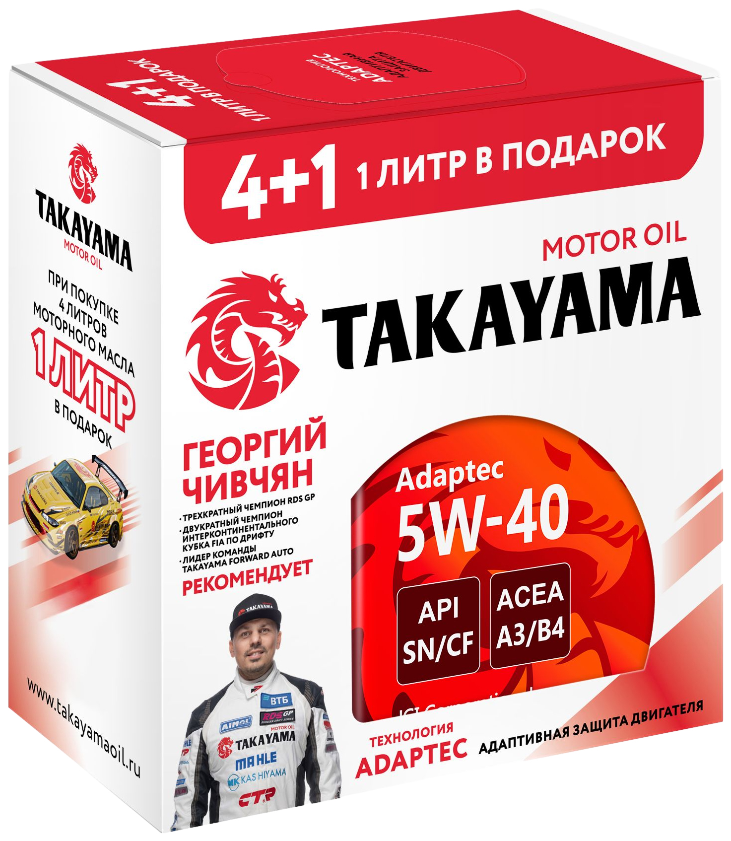 Масло Моторное Takayama Adaptec 5W-40 Синтетическое 4 Л + 1 Л 605624 TAKAYAMA арт. 605624