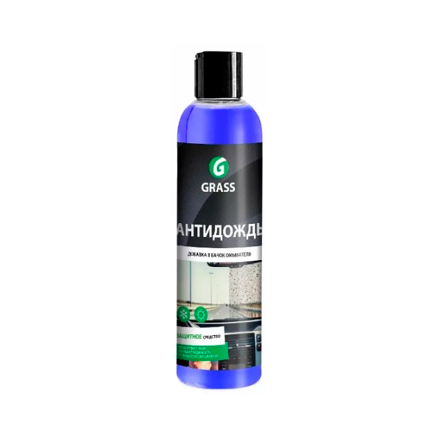 Добавка «Антидождь» от Grass разработана специально для улучшения видимости на дороге в условиях дождя, снега и грязи. Она создаёт на поверхности стекла гидрофобное покрытие, которое отталкивает воду и грязь, обеспечивая хорошую видимость и безопасность вождения.