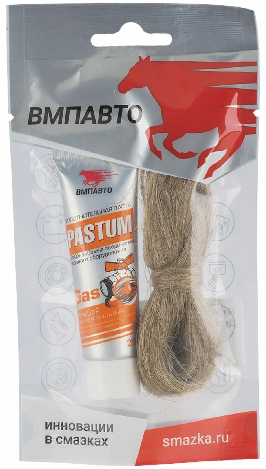 Комплект со льном ВМПАВТО Pastum gas представляет собой набор, состоящий из пасты и льна. Этот комплект предназначен для использования в различных системах, где требуется герметизация соединений.