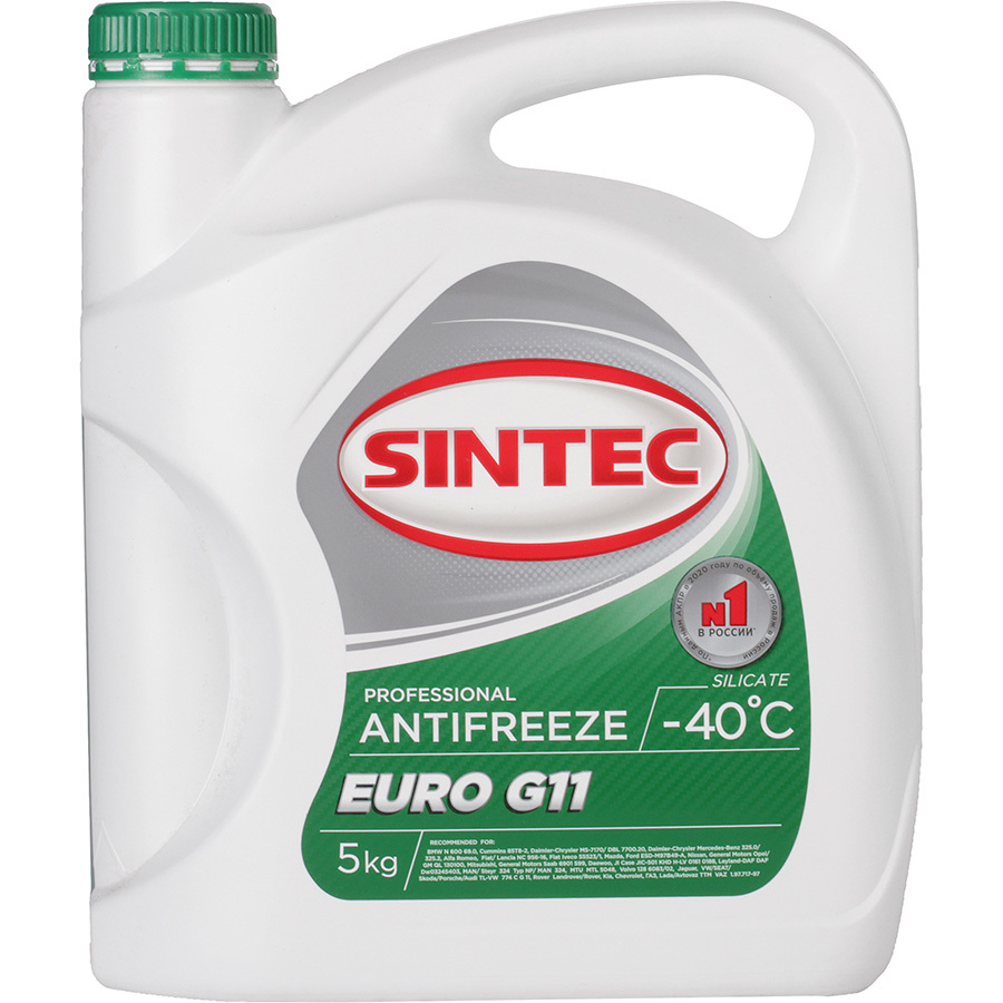 Sintec EURO G11 (зелёный) — синтетическая охлаждающая жидкость, разработанная по уникальной технологии на основе качественного моноэтиленгликоля, малозольных присадок и ингибиторов коррозии. Отличный вариант для атмосферных и турбированных бензиновых и дизельных двигателей — новых и с пробегом, функционирующих в режиме интенсивных нагрузок.