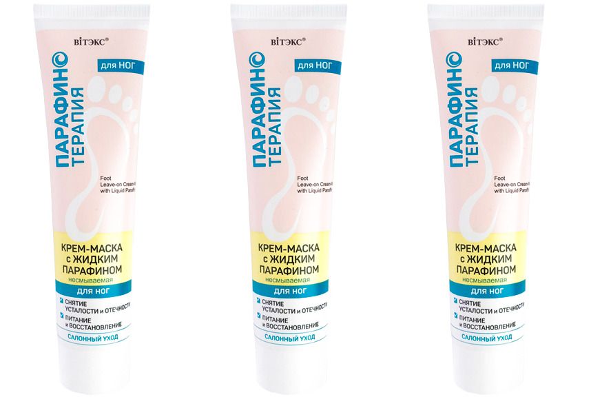 Витэкс Крем-маска для ног Парафинотерапия, с жидким парафином несмываемая, 100мл, 3шт