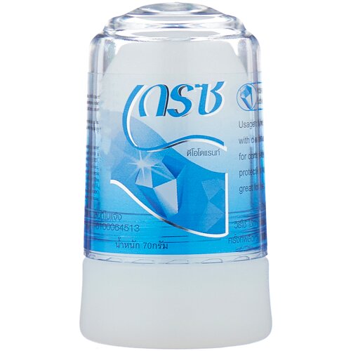 Кристалл Grace deodorant — это дезодорант, образованный из алюмокалиевых квасцов. Добывают его из вулканических пород, поэтому такой кристалл является натуральным, без вспомогательных веществ. Для человека он абсолютно безопасен.