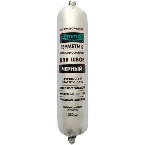 CEMMIX Клей-герметик для швов — однокомпонентный высокомодульный полиуретановый герметик, предназначен для герметизации швов из различных материалов шириной до 20 мм, в том числе подвергающихся постоянному воздействию воды и вибрации. Герметизация и приклеивание закладных и монтажных элементов на конструкции кровли (водосточные воронки, аэраторы, карнизы и пр.). Используется для приклеивания и укладки кровельной черепицы и других кровельных материалов.