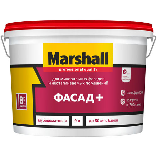 Краска акриловая Marshall Фасад+ влагостойкая моющаяся глубокоматовая бесцветный 9 л