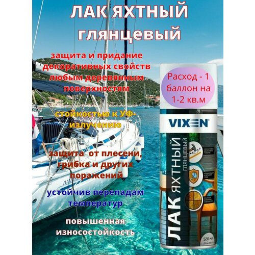 Атмосферостойкий однокомпонентный лак для обработки дерева. Предназначен для защиты и придания декоративных свойств любым деревянным поверхностям (лодкам, террасам, дверям, мебели, лестницам, паркетным и дощатым полам, оконным рамам и др.), эксплуатируемых в условиях повышенной влажности и неблагоприятных атмосферных условий. Придает покрытию слегка желтоватый оттенок. Яхтный лак в основном используется как лак для мебели. Аэрозоль создает высокопрочное покрытие, которое обладает повышенной износостойкостью, стойкостью к УФ-излучению, перепадам температур, длительному воздействию морской и пресной воды, а также бытовых моющих средств. Лак для дерева - яхтный лак или лак мебельный для дерева надежно защищает деревянные поверхности от образования плесени, грибка и других биологических поражений. Обладает высокой адгезией. Может наноситься на поверхности, окрашенные алкидными и алкидно-уретановыми лакокрасочными материалами. Обладает слегка желтоватым оттенком ввиду специфики смолы.