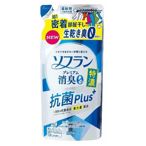 LION SOFLAN Кондиционер для белья, супер-концентрат с антибактериальным эффектом, мягкая упаковка 400 мл.