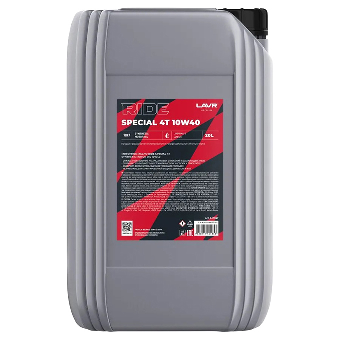 LAVR Ln7847 Моторное масло MOTO RIDE SPECIAL 4Т 10W40 SN 20 л