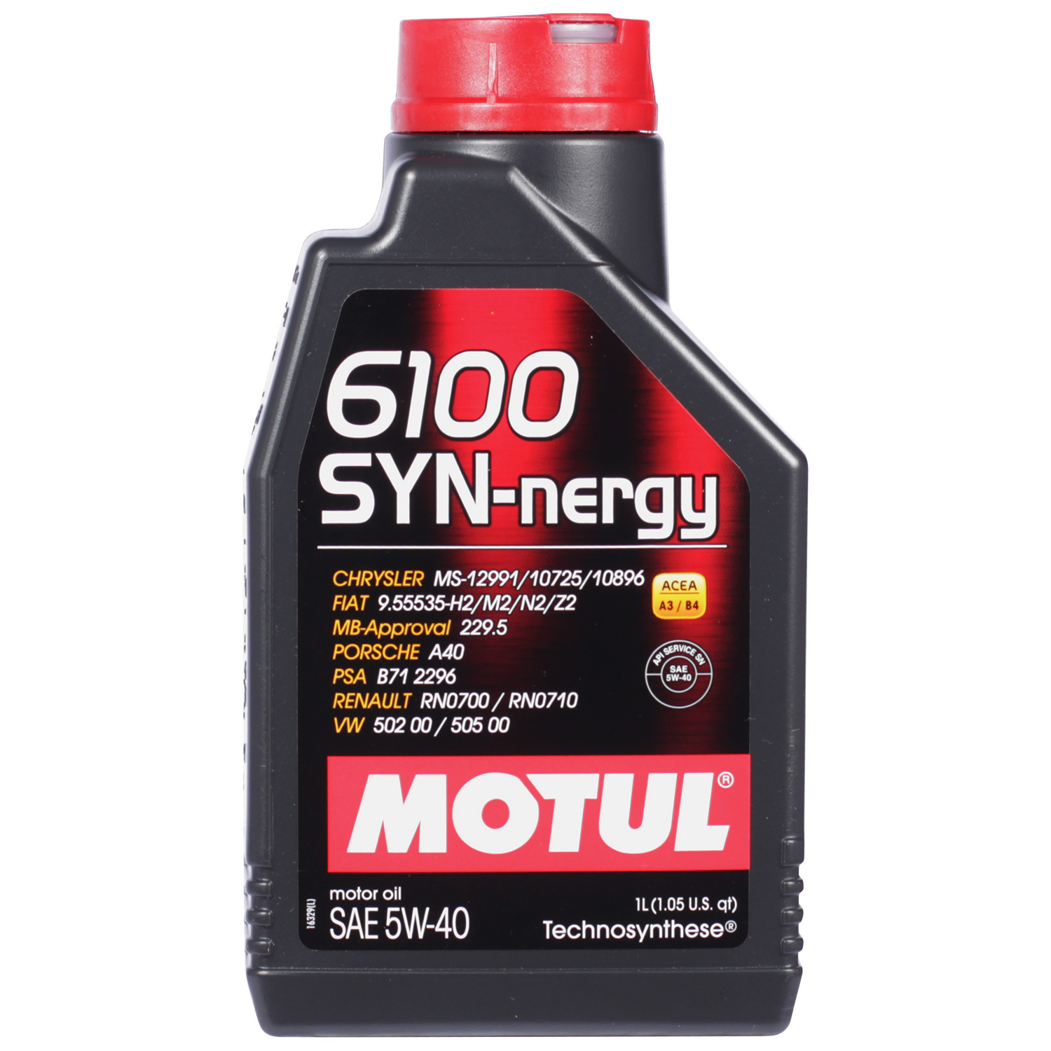 Motul 6100 SYN-NERGY 5W-40 — полусинтетическое моторное масло, производится по фирменной технологии компании, которая позволяет приблизить качества полусинтетических масел к синтетике. Может успешно применяться в мощных бензиновых и дизельных двигателях последних поколений, атмосферных, с турбинами и непосредственным впрыском. Подходит для разных типов топлива — все сорта бензина, этанол, биотопливо, дизель и газовое топливо.