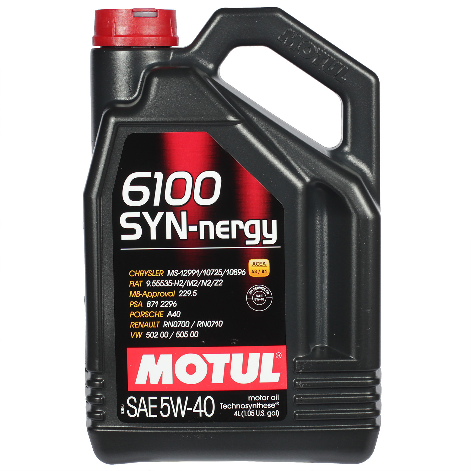Motul 6100 SYN-NERGY 5W-40 — полусинтетическое моторное масло, производится по фирменной технологии компании, которая позволяет приблизить качества полусинтетических масел к синтетике. Может успешно применяться в мощных бензиновых и дизельных двигателях последних поколений, атмосферных, с турбинами и непосредственным впрыском. Подходит для разных типов топлива — все сорта бензина, этанол, биотопливо, дизель и газовое топливо.