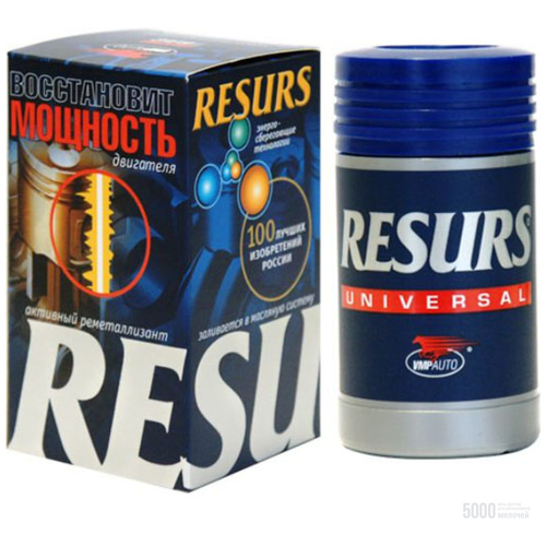 Реметаллизант RESURS UNIVERSAL - безопасная защита и восстановление двигателя проверенная временем !Выравнивает компрессию, снижает расход топлива, уменьшает угар масла, устраняет шум, вызванный износом.Подходит для:• бензиновых двигателей• всех типов маселсвойства• Предотвращает сухое трение при высоких нагрузках, перегреве и холодном пуске ДВС.• Увеличивает ресурс двигателя при регулярном применении до 2-х раз.• Повышает компрессию до 40%.• Снижает расход топлива до 7-10 %.• Снижает угар и расход масла до 5 раз.• Очищает выхлопные газы, снижает эмиссию СН в 1,5 раза.• Устраняет шум, вызванный износом зубьев шестерен, синхронизаторов и подшипников.применение1) желательно сменить масло и фильтр2) прогреть двигатель до рабочей температуры и заглушить3) интенсивно встряхивать флакон в течение 20-30 секунд4) залить содержимое флакона в маслозаливную горловину5) дать двигателю поработать на холостых оборотах 10-15 мин.показания К применению:• Расход топлива превышает уровень, заявленный производителем, на 10 % и более• Пониженная или несбалансированная компрессия• Угар масла более 150 г. на 1000 км.• повышенная шумность и вибрация мотора• Пробег более 60 000 км.• Ощутимая потеря лошадиных сил, трудно подняться в горку, вялый разгондозировка:При дозировке более 100г. препарат заливать через небольшие интервалы пробега (50-100 км)• Восстановление двигателя:Объем масла 3-5 л. и пробег до 100 тыс. км. - Дозировка Resurs Universal : 50г.Объем масла 3-5 л. и пробег 100 - 250 тыc. км. - Дозировка Resurs Universal : 100г.Объем масла 3-5 л. и пробег после 250 тыс. км. - Дозировка Resurs Universal : 100г.Объем масла 6-10 л. и пробег до 100 тыс. км. - Дозировка Resurs Universal : 100г.Объем масла 6-10 л. и пробег 100 - 250 тыc. км. - Дозировка Resurs Universal : 150г.Объем масла 6-10 л. и пробег после 250 тыс. км. - Дозировка Resurs Universal : 150г.Объем масла 10-12 л. и пробег до 100 тыс. км. - Дозировка Resurs Universal : 150г.Объем масла 10-12 л. и пробег 100 - 250 тыc. км. - Дозировка Resurs Universal : 250г.Объем масла 10-12 л. и пробег после 250 тыс. км. - Дозировка Resurs Universal : 300г.