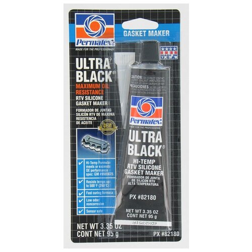 Быстровулканизирующийся, безопасный для кислородных датчиков герметик третьего поколения. Обладает высокой упругостью и повышенной устойчивостью к воздействию масел. Позволяет сформировать по месту высоконадежную прокладку, превосходящую по техническим параметрам любые резиновые. Рабочий диапазон от -54°С до +260°С. Сертифицирован и используется на заводах Ford, Chrysler, GM, автоваз. Применение: Очистить поверхности. Нанести равномерным непрерывным слоем, закольцовывая отверстия для болтов. Не дожидаясь высыхания, произвести сборку. Удалить излишки. Высыхает за час. Полная вулканизация через 24 часа.