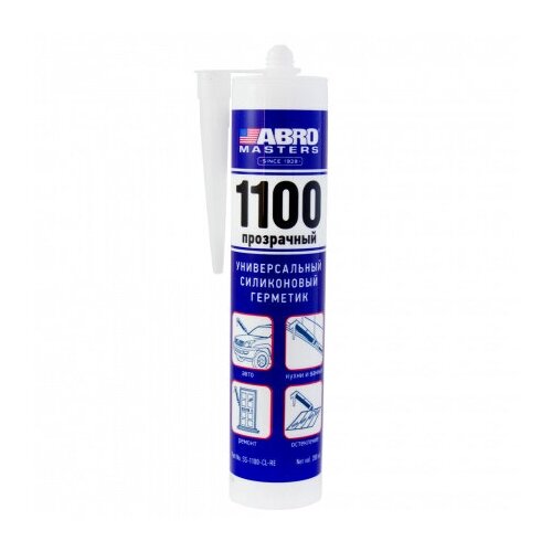 Прозрачный силиконовый герметик 1100 ABRO MASTERS применяется для заделки и склеивания всех видов швов и стыков, подходит для вклеивания стекол. Может использоваться во всех случаях, когда нужна изоляция от внешних воздействий, высокая влагостойкость и прочность.