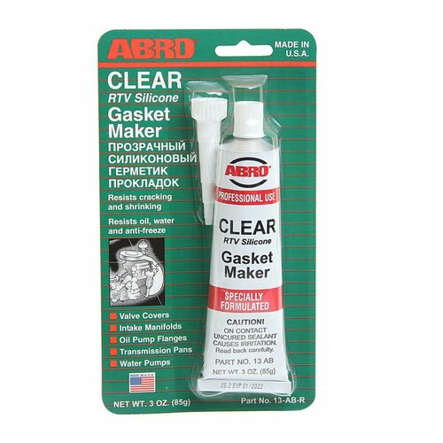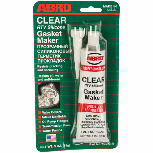 Стандартный герметик прокладок ABRO прозрачный Китай 85 гр 13-AB-CH-R-S обеспечивает надежную герметизацию соединений, ремонтирует и заменяет штатные прокладки из резины и силикона. Продукт используют во время монтажа деталей, работающих при повышенной температуре. Состав образует прочный клеевой шов, который не разрушается под действием масла, воды и антифриза.