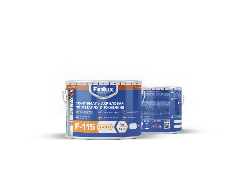Грунт-эмаль по металлу Finlux быстросохнущая матовая F-115Gold Белый 3 кг