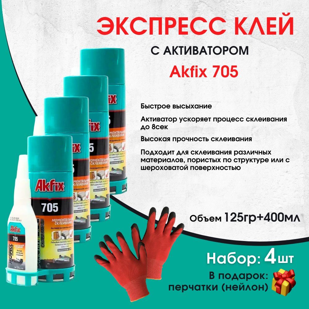 Универсальный двухкомпонентный клей Akfix Акфикс 705 125гр+400мл / Akfix-400-125-4 / Akfix-400-125-4