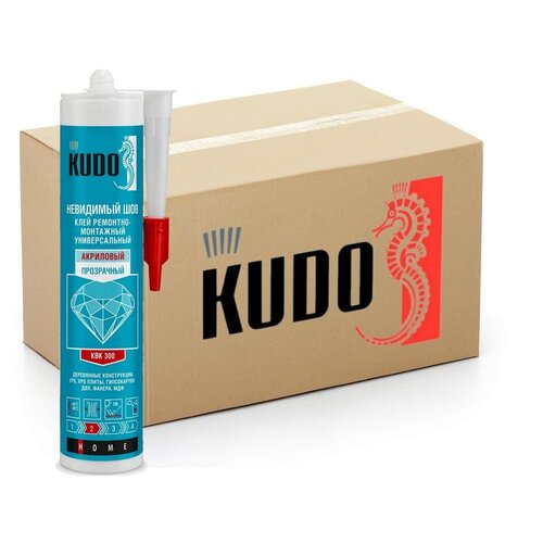 Клей KUDO "Невидимый шов", ремонтно-монтажный, акриловый, универсальный, прозрачный, туба, 280 мл, комплект 12 шт.