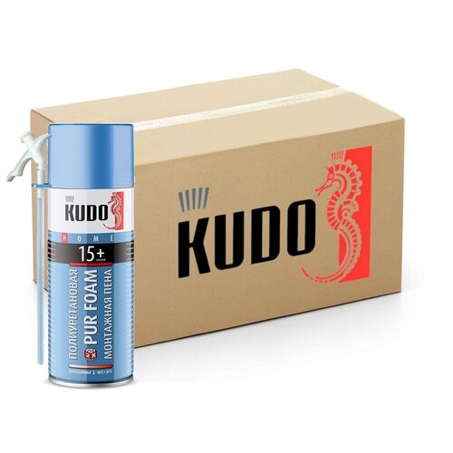 Пена полиуретановая монтажная KUDO "PUR FOAM 15+", бытовая, всесезонная, выход до 15 л., 520 мл, комплект 12 шт.