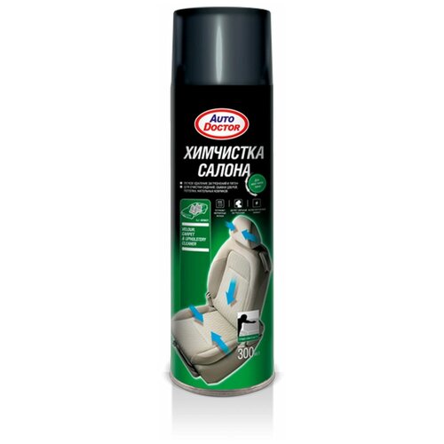Сухая химчистка салона 300мл аэрозоль.Сухая химчистка AutoDoctor - превосходно очищает изделия из велюра, ткани и ковролина. Быстро удаляет даже глубоко въевшуюся грязь. Применяется для очистки сидений, обивки дверей, потолка, напольных ковриков и т. д. Удаляет большинство свежих пятен от кофе, молока, следов губной помады, Восстанавливает первозданный вид, удаляет неприятные запахи, после использования оставляет в салоне автомобиля приятный аромат спелых яблок. Может использоваться для очистки виниловых покрытий, панелей приборов и молдингов. Придает материалам антистатические свойства. Может использоваться в бытовых целях.Распылите состав на обрабатываемую поверхность с расстояния 20-30см и равномерно распределите его по поверхности чистой тряпкой или губкой. Выждите 30-40сек. и обработайте поверхность сухой, мягкой тряпкой или губкой. Для грубой поверхности (ковер и т. п.) используйте щетку. После чистки протрите поверхность сухой мягкой тряпкой или губкой.