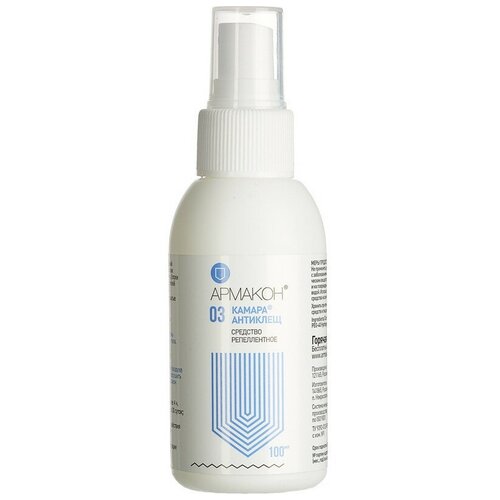 Репеллентное средство спрей Армакон Камара Антиклещ предназначен для защиты от членистоногих - иксодовых клещей (переносчиков возбудителей клещевого энцефалита и болезни Лайма) и кровососущих насекомых (комаров, мокрецов, мошки, слепней, блох). Репеллентное вещество ДЭТА препятствует посадке насекомого на поверхность, что позволяет избежать укуса. ДЭТА (DEET) является самой эффективной и распространенной репеллентной субстанцией в мире. Средство Камара Антиклещ относится к высшей категории эффективности репеллентных средств. Время защитного действия: при нанесении на кожу - более 4 часов; при нанесении на одежду - до 30 суток от насекомых и до 5 суток от иксодовых клещей (при хранении в полиэтиленовом пакете). Рекомендуется распылять на открытом воздухе с расстояния 20-25 см. Для защиты от клещей средством необходимо обработать одежду. Меры предосторожности: использовать спрей не более двух раз в сутки, не допускать попадания в глаза и рот, не применять детям, беременным и кормящим женщинам и людям с кожными заболеваниями. Не содержит силиконов, красителей, парабенов. Поставляется во флаконах объемом 100 мл с распылителем Соответствует ТР ТС 019.2011/ГОСТ 31460-2012/ГОСТ 31696-2012. Условия хранения: избегать попадания прямых солнечных лучей. Срок годности от даты изготовления 36 месяцев. Внимание! Произошло изменение дизайна упаковок производителем. В связи с этим изображения товаров на фотографиях, представленных на сайте, могут отличаться. Дизайн упаковки представлен в двух вариантах без возможности выбора.