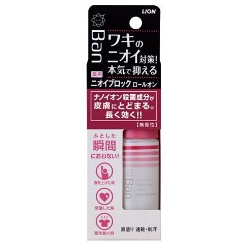 LION Ban Roll On Дезодорант-антиперспирант роликовый, нано-ионный, без аромата, 40мл.
