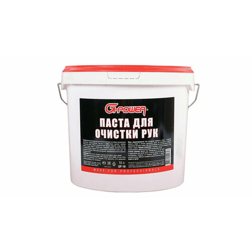 Паста для очистки рук G-Power 10л GP-10 – профессиональное средство для очистки кожи рук от стойких загрязнений различного происхождения. Быстро и эффективно удаляет глубоко въевшуюся грязь, землю, консистентные смазки, чернила, сажу, битум, краску, следы клеёв и герметиков. Содержит набор антисептических и косметических средств для увлажнения и смягчения кожи рук. Не вызывает аллергии. Имеет приятный аромат. Экономична в использовании. Биоразлагаемая. Применение: нанести 2-3 гр. на руки, тщательно растереть, смыть водой. Состав: деминерализованная вода >30% абразив >30%, ПАВ>15%, аллантоин <5%, Д-пантенол <5%, глицерин <5%, краситель<5%, отдушка <5%, консервант <5%. Меры предосторожности. При попадании в глаза – тщательно промыть водой. При проглатывании не вызывать рвоту и обратиться к врачу. Не допускать нагревания свыше 49 С.