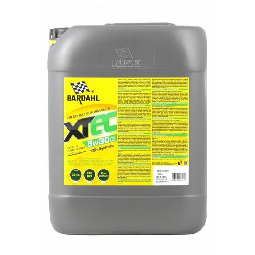 Код товара для заказа: NSII0015264249;Артикул: 36308;Бренд: BARDAHL;характеристики.Состав: синтетическое;Тип двигателя: для бензинового двигателя, для дизельного двигателя;Вязкость по SAE: 5w30;Класс по ACEA: C3;Объем: 20 л;Масло моторное Bardahl XTEC 5w30100% синтетическое моторное масло для экономии топлива, Low SAPS специально разработано для автомобилей, оснащенных сажевым фильтром (DPF), соответствующих евро IV и V нормам. Bardahl XTC С3 5W30 имеет высокое HTHS, гарантирующие отличную защиту. Особенно подходит для последнего поколения двигателей BMW, MERCEDES, PORSCHE, VW, Audi, Seat, Skoda дизельных и бензиновых, требующих смазки ACEA C3.Физико-химические свойстваПлотность при 15°C, г/см³: 0,851Вязкость при 40°C, мм²/с: 69,2Вязкость при 100°C, мм²/с: 12Индекс вязкости: 171Температура застывания, °C: -42Температура вспышки, °C: 230Общее щёлочное число, мгKOH/г: 6,7Спецификации и допуски• ACEA C3;• VW 504.00/507.00;• MB 229.51;• BMW LL-04;• Porsche C30;