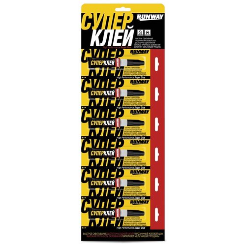 Однокомпонентный супер клей RUNWAY на основе этилцианакрилата, предназначен для быстрого склеивания различных материалов.