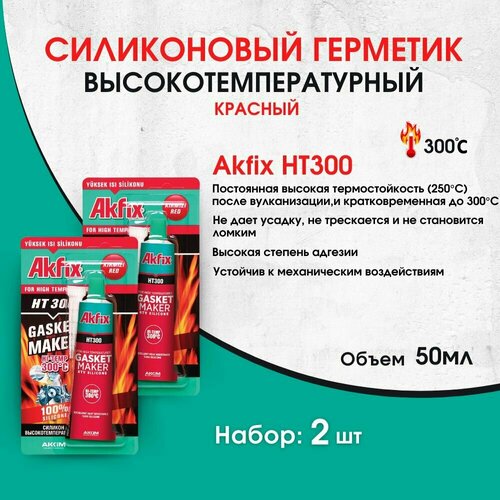 HT300 Термостойкий Силиконовый Герметик Akfix, Красный, 2шт по 50 vk