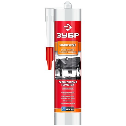 Универсальный высококачественный силиконовый герметик широкого применения. ПреимуществаОтличная адгезия к большинству строительных материаловУстойчив к длительному воздействию водыУстойчив к воздействию внешней среды, УФ-излучениюСохраняет заявленные характеристики в широком диапозоне температурВысокоэластиченИспользованиеРекомендуется для наружных и внутренних работ при строительстве, ремонте и в быту для заполнения и герметизации швов, стыков, щелей большинства строительных материалов (стекло, керамика, металл, пластик, ПВХ, дерево, резина). Не пригоден для окрашивания и использования с материалами, подвергающимися коррозии в кислотной среде (некоторые металлы, природный камень, цемент, бетон). Герметик силиконовый ? универсальный? ЗУБР идеален для выполнения высококачественных работ при: - остеклении дверей, окон и других строительных конструкций, - монтаже дверных коробок и оконных рам для уплотнения и герметизации, - сантехнических работах, в том числе в местах подверженных постоянному воздействию воды (без контакта герметика с питьевой водой), - фасадных работах для герметизации и заполнении стыков и швов, - монтаже и ремонте систем вентиляции.